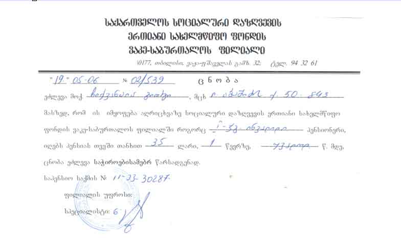ადრე მქონდა აქ თემა, დახმარების შესახებ, მაგრამ შეგნებულად არ ვიმეორებ, და (სამატებელ საბუთს ველოდებით, რაც აქ მთხოვეს...).